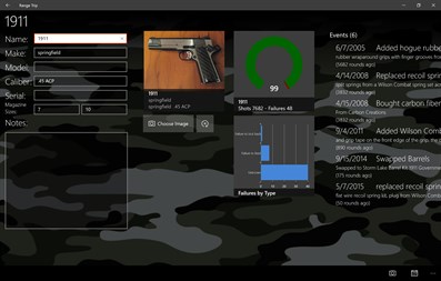On each gun, you can track events, such as date of manufacture, purchase / sale info, cleaning, and maintenance.