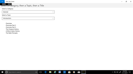 This app displays articles stored in a database and accessed through a web service. It contains basic introductory information about the Japanese method called Reiki which is thought to be a healing energy method by many. Some people accept Reiki only as a useful medication.