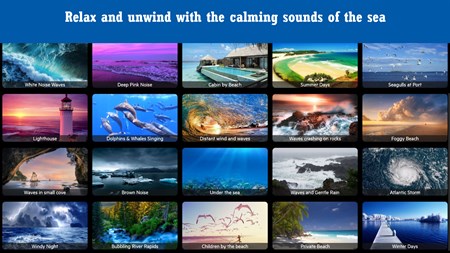 Welcome to "Relax Ocean Sounds", the ultimate relaxation app that allows you to immerse yourself in the soothing sounds of the ocean. With our app, you can enjoy the calming sounds of waves lapping against the shore and seagulls calling in the distance, all from the comfort of your own device. Our app is perfect for anyone looking to unwind, destress, meditate, or simply create a relaxing atmosphere. The sounds of the ocean have been shown to have a therapeutic effect on the mind and body, helping to reduce stress and anxiety, promote better sleep, and increase feelings of relaxation and well-being. With this app, you can access these benefits anytime, anywhere. We've carefully curated a wide range of high-quality ocean sounds to help you create your own personalized relaxation experience. Whether you prefer the gentle lapping of waves on a sandy beach, the invigorating rush of water crashing against rocks, our app has it all. Plus, with intuitive controls and a user-friendly interface, it's easy to customize your experience and find the perfect combination of sounds to suit your needs. *** Application features *** - 40+ perfectly looped sounds - Timer system that slowly fades audio out - Volume controls - Usage in the background and with other apps - Pause and play sounds *** List of sounds *** - Beach Calmness - Sunrise at Ocean - Crashing Ocean Waves - Walking on Beach - Naptime in Maldives - White Noise waves - Deep pink noise - Cabin by beach - Summer Days - Seagulls at port - Lighthouse - Dolphins and Whales - Distant wind and waves - Foggy beach - Waves in small cove - Brown noise - Under the sea - Waves and gentle rain - Atlantic Storm - Windy night - Bubbling river rapids - Children by beach - Private beach - Winter days Our app is perfect for a variety of uses, from creating a calming atmosphere for yoga, meditation, or mindfulness practices, to helping you unwind after a long day or promote better sleep. You can even use our app to create your own ocean-themed soundscapes, adding additional sounds such as flute or bird songs to create a truly immersive experience. *** Usage notes *** For a better experience, I recommend you the use of headphones or earphones to listen the relaxing sounds. You can use the app in background and with other apps.
