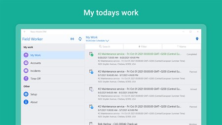 The Resco mobile app is the universal companion for all users of Resco's field service, maintenance and operations software. Use the app to receive work orders, work instructions, organize your daily schedule, fill out forms, perform preventive maintenance and inspection jobs, and collect any kind of data. Take photos and videos, access your work documentation and let clients or supervisors sign documents digitally. After the job is done, generate a report in seconds directly from the app and send it by e-mail. The app is easily customizable and best of all: is fully functional offline, wherever you are. To synch the app with your existing Resco organization, simply enter your credentials in the app settings. If you are a new to Resco, you can use a set of demo data. For a full experience, start a free 30-day trial or request a tour of the product. Find out more at www.resco.net
