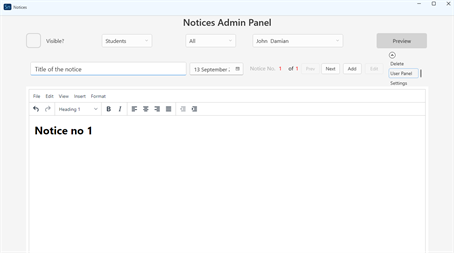 Notices are an intergral part of comms in schools, colleges or any other institution of learning. School Notices app makes it not only easy to share notices with your members of staff, but makes such communucatios convenient and effective and time saving. You won't have to worry about recalling messages should there arise a need to ammend or withdraw a notice. It makes the notices more user friendly for your staff as they can filter notices that are relevant to them. Furthermore, It gives you the option to categorise the consumers of the notices such that they will only see that which is relevant to them.