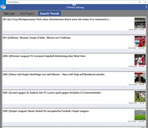 Switzerland Newspaper(Switzerland Newspapers) is a best way of reading news and newspapers. The hot topics bring the news by list. The search trends show the most frequently searched keywords from Switzerland. Read all your newspapers and news websites online in one app. You will find newspapers from all over the world. Switzerland newspaper: 20 minutes, Neue Zürcher Zeitung, Blick am Abend, Blick, Aargauer Zeitung, Tages-Anzeiger, Basler Zeitung, Berner Zeitung, Die Südwestschweiz, Swiss Radio and Television, Spiegel, Bild, Stern, Google News, News, CNET, Chip, Heise , Cash, Huffington Post Germany, TagesWoche, Radio Rottu Oberwallis, Der Bund, St.Galler Tagblatt, 20 minutes, 24heures, Le Matin, Tribune de Genève, Le Temps, RTS, Arcinfo, Romandie, Le Huffington Post, Le Monde, Le Figaro, Liberation, leParisien, Ticinonline, Corriere del Ticino, la Repubblica, Corriere della Sera, BBC, Mail Online, Ticinonews, Telegrafi, CNN.com, SwissInfo.ch, Sailing