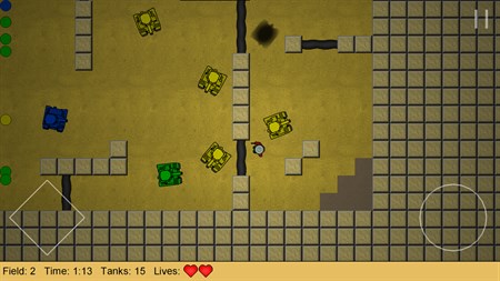 You are an explorer in a two-dimensional world full of robotic tanks. The objective of the game is to destroy all tanks. Although your character has a powerful gun, it is mostly unprotected against the tanks.