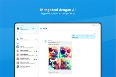 Skype membantu orang-orang di seluruh dunia tetap terhubung. Sapa dengan pesan instan, panggilan suara atau video, apa pun perangkat tempat Skype digunakan. Mengobrol dengan Bing baru di Skype untuk mendapatkan jawaban, rekomendasi, dan inspirasi yang didukung AI. Skype tersedia di ponsel, tablet, PC, dan Mac. • Panggilan video – Jangan hanya mendengar keseruannya, lihatlah secara langsung! Berkumpul dengan 1 atau 49 teman dan keluarga Anda melalui panggilan video HD. Lihat senyuman dan tangisan kebahagiaan semua orang saat Anda memberitahukan pertunangan Anda kepada mereka. • Obrolan – Berkomunikasi secara instan. Kirim pesan kepada teman Anda, tarik perhatian seseorang dengan @sebutan, atau buat obrolan grup untuk merencanakan reuni keluarga. • Bing di Skype – Gunakan Bing baru di obrolan pribadi dan grup untuk mendapatkan jawaban yang didukung AI dan sesuai konteks percakapan. Minta rekomendasi untuk membantu menyusun rencana bersama dan memperoleh inspirasi serta bersenang-senang dengan meminta ide dari Bing. • Berbagi – Kirim foto dan video dengan keluarga dan teman Anda. Simpan foto dan video bersama ke rol kamera Anda. Bagikan layar Anda untuk menyusun rencana perjalanan dengan teman atau menyajikan desain kepada tim Anda. • Panggilan suara – Tidak nyaman di depan kamera? Lakukan panggilan suara ke siapa saja di dunia melalui Skype. Anda juga dapat menelepon ponsel dan telepon kabel dengan tarif rendah. • Ekspresikan diri Anda – Semarakkan percakapan dengan emosikon, GIF, stiker, gambar dari perangkat Anda atau web. • SMS - Gunakan Skype untuk mengirim pesan SMS ke ponsel di seluruh dunia. Versi Skype ini hanya tersedia untuk Windows 10 dan 11. Jika Anda menjalankan Windows versi lama, buka www.skype.com untuk mengunduh Skype. Panggilan antar Skype gratis. Biaya data operator mungkin berlaku. Sebaiknya gunakan paket data tak terbatas atau koneksi WiFi. Akun Microsoft diperlukan. Bing di Skype tersedia melalui daftar tunggu pratinjau Bing. Untuk mempelajari selengkapnya dan mendaftar, kunjungi: https://www.bing.com/new • Kebijakan Privasi dan Cookie: https://go.microsoft.com/fwlink/?LinkID=507539 • Perjanjian Layanan Microsoft: https://go.microsoft.com/fwlink/?LinkID=530144 • Ringkasan Kontrak UE: https://go.skype.com/eu.contract.summary