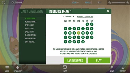 The games are divided into 9 Solitaire groups: Klondike – Classic and beloved Solitaire games such as Klondike Turn 1, Klondike Turn 3, Easthaven and Vegas.