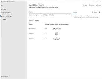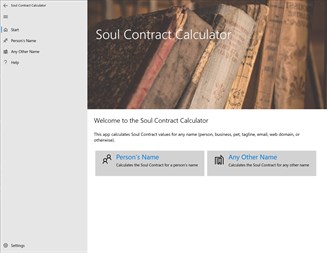 This app calculates Soul Contract values for any name (person, business, pet, tagline, email, web domain, or otherwise).