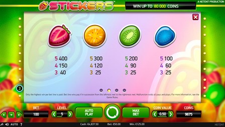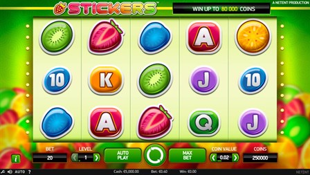 Stickers Slot is a colorful fruity summer slot. For maximum winning opportunities players are offered Sticky Wilds and Sticky Spins. Stickers offer 5 reels 3 rows and 20 colorful winning lines.