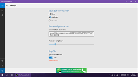 With "The Password Vault", you can store your passwords on your phone, tablet or PC encrypted. No more forgotten passwords! "The password vault" uses the AES-256 algorithm to encrypt the data.