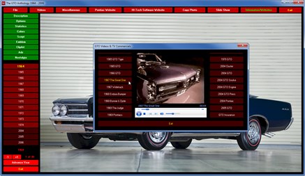 Another officially licensed DVD-ROM from HI-Tech Software. This photographic encyclopedia of the legendary Pontiac GTO "muscle" car contains over 400 high resolution (1200x730) photos, graphics, videos, TV Commercials ads and much more. The tour starts with the first GTO optioned Tempest of 1964 through the last of the breed in 1974 and then introduces the re-birth of the "Goat" in 2004 and continues to 2006. Browse the statistics, the options, those tremendous horsepower engines, the emblems, the scripts, etc. It’s all here! Everything you want to know about every year. A must have for any GTO owner or enthusiast!