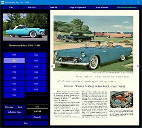 Take a nostalgic tour through history. Experience the style and hype of the automobile advertising industry from the glory days of cars. This CD includes nearly 300 Thunderbird magazine ads as they appeared in US publications from the first T-Bird in 1955 through the classic 4-door models of 1969.