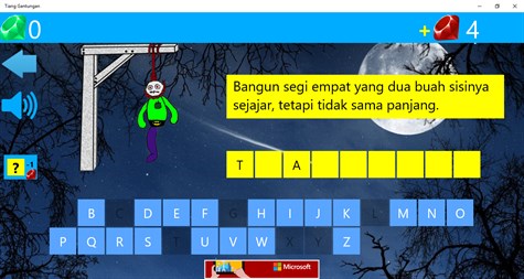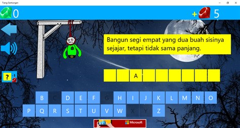 Tukang gantung - adalah menyenangkan permainan puzzle dalam kata di mana Anda ingin menebak kata di ujung mengetahui panjangnya. Anda memiliki hak untuk memilih surat apapun dari alfabet, jika Anda salah, Anda mendapatkan satu langkah lebih dekat untuk kerugian. Jika Anda menebak kata dalam waktu kurang dari enam kesalahan - Anda menang! Lebih dari 10 ribu kata. 3 tingkat kesulitan