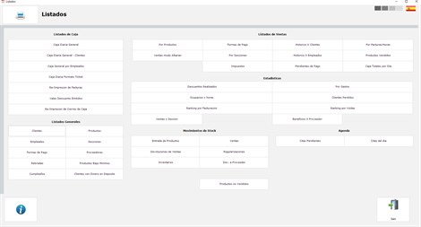 LISTINGS AND STATISTICS = Controls sales, cash closures, product sales history, etc. And analyze the operation of your business. Select with a click the dates between which you want the statistics of your business.