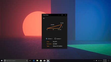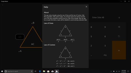 Triangle Master utilizes the Law of Sines and the Law of Cosines to solve triangles. Simply enter three values of a triangle (angles and sides or just the sides) and Triangle Master calculates the remaining sides and angles. Additionally, Triangle Master calculates the area and perimeter of the triangle as well as determines the type of triangle.