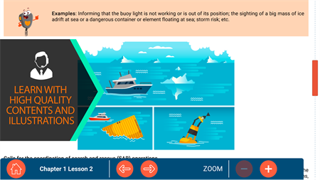- 9 illustrated chapters in full color and with great quality that will allow you to learn in an easy and attractive way everything related to the Global Maritime Distress and Safety System and radiocommunication equipment at sea.