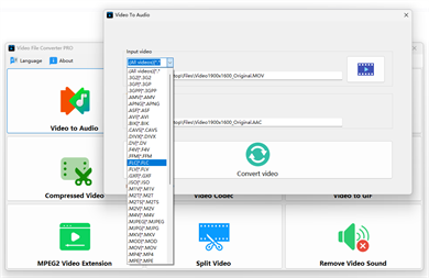 Video file converter PRO integrates the main functions of video and audio file processing, editing, conversion and compression.