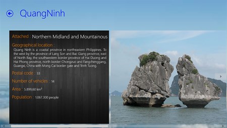 VietNamBook is an application that introduces the best general information about Viet Nam on Windows 8. VietNamBook provides you with whole information of 63 provinces in Viet Nam for worldwide people. It could be a reference handbook about geography, postal code, area and population of Vietnam. This application also helps to refer to tourist places, famous sights of each province. Hopefully everyone will feel interesting when using this application.