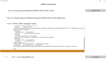 VOB Converter enables you convert WMV, MKV, MP4, AVI, MP4, 3GP, RMVB, FLV, and QuickTime MOV video to DVD VOB video. Support most popular video formats VOB (Video Object is the container format in DVD-Video media.). Now you can burn the versatile video to your DVD burner wherever and whenever. Simple settings, high speed, and friendly interface. It is very easy to use without any special setting, only a few clicks complete the task of convert audio; It can detect your hardware configuration and decide an optimized convert scheme automatically; Provide greater than 300% converting speed by multithreading, so fast beyond your imagination.