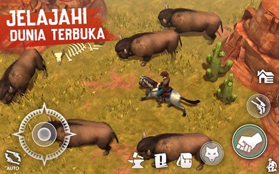 ????Bangun Istal & Tunggangi Kuda???? Seorang koboi tak berarti tanpa kuda dan ranch-nya. Bangun istal dan kawan setiamu akan membantumu bepergian lebih cepat dan membawakan barang ekstra dalam petualangan. Simulator ranch memungkinkanmu membuat tempat perlindungan sempurna.