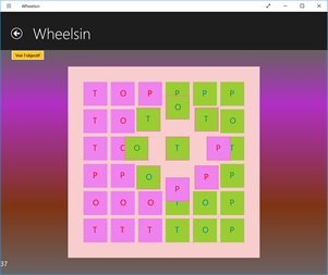 Wheelsin is a puzzle game. You have to find a configuration by rotating boxes of a 6x6 grid. Just click on a box inside the grid to a wheel appears. You can then turn the wheel and move the boxes.