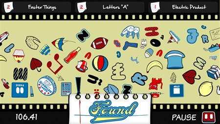 Where’s My What Free is a simple yet highly addictive game where you must identify and select a certain number of items on the screen before time runs out! While it sounds simple, it quickly becomes a dash against the clock as you pinpoint the right items in dozens of included categories. If you choose a wrong item, valuable seconds are lost. If you choose a correct item, valuable seconds are given. Are you quick enough to get triple-star ratings? Adventure Mode features an amazing 100 levels to complete and the farther you get, the more difficult it becomes. Free Mode is a race against time as you play to beat your own record by discovering as many items as possible. You can even invite a friend to your house for some local two-player fun!
