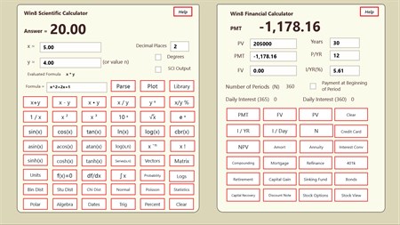 Win8Calc is a powerful , feature rich comprehensive calculator. It is a financial calculator, it is a scientific calculator, it is a business calculator, a personal finance calculator, math calculator and contains a mind boggling number of calculations. This app contains spectacular graphing of mathematical functions, you can see and visualize the problems you are solving.