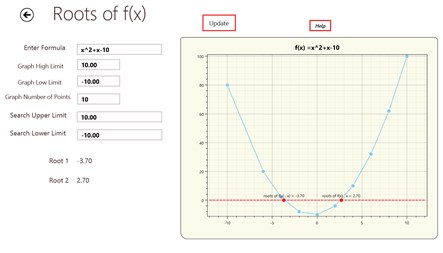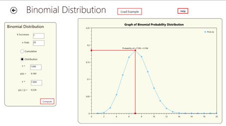 Win8calc plots functions, definite integrals and derivatives. It is easy to do ,you can type in an equation, it is interpreted and parsed and a graph of the equation is displayed. You can see the function plots, the area the is integrated and the derivative on the graph. It also plots statistics – regression and five probability distributions – Binomial, Chi Squared, Student’s t, Normal and Poisson. You can also solve for roots of functions and display the results on graphs.