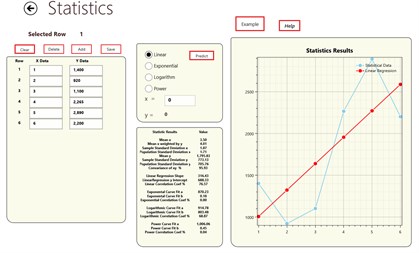 The Statistics function provides as output all the important statistics you need. It automatically provides four regression models as part of the solution. You can select the models you wish to use and forecast data using the results. It is all you need for statistics.