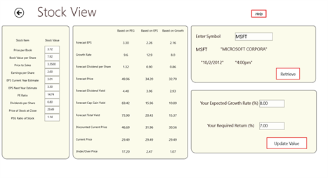 Stock Import allows you to enter a Stock Symbol and evaluate Stocks instantly. The calculator will import the current stock data and will provide a valuation based on your expected growth rate and return expectations , it is simple and fast , you will like it.