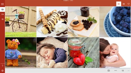 3. In photo viewer > zoom in and out > slideshow > thumbnail photos > memo on photo > delete selected photo > share selected photo > rotate photo