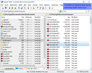 Its dual panes and folder tabs allow you to browse many folders simultaneously and compare or transfer files from one folder to another.