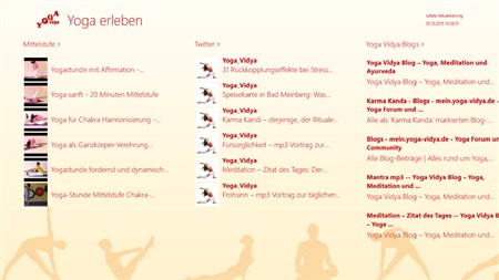 Folgende Kategorien sind vorhanden: - Mitmachyoga - Yoga für Anfänger - Meditation - Yoga Mittelstufe - Yogatherapie