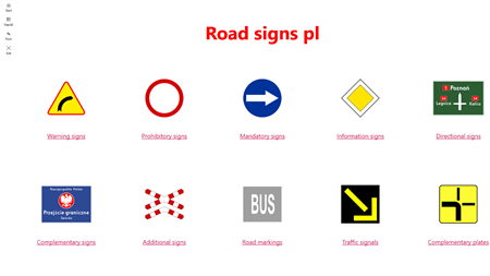 Application for learning Polish road signs. Recommended screen resolution is 1920:1080.