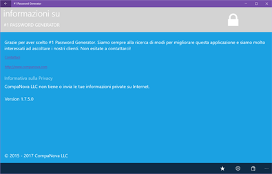 - Create facilmente nuove password forti / difficili da indovinare con un solo clic - Copiare le password negli Appunti per un utilizzo rapido in altre applicazioni - Definire i propri requisiti di password (o specifiche aziendali) - Definire la lunghezza della password - Includi / esclude i numeri - Includi / esclude i caratteri speciali - Definire specifici caratteri specifici che soddisfano le tue esigenze - Escludi caratteri ambigui - Controlla la potenza della password (solo informativo) - Impostazione dei promemoria per modificare le password scadute (solo Windows Phone 8.1) - Genera password illimitate - Ottimo strumento per gli amministratori di sistema o (sysadmin e sysadmins) - Beneficia dell'integrazione integrata con Cortana e usi i comandi vocali per generare le password - PasswordGen - #1 Password Gen per Password Manager App e 1Pass - Generatore di password forte - Controlla la password Forza - Utilizzare Random Password Generator - Strong Password Generator - Supports Voice Commands and Integration with Cortana