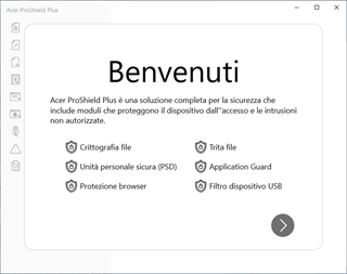 Acer ProShield Plus e Acer ProShield Plus Service sono applicazioni integrate e sono supportate solo su dispositivi Acer. Acer ProShield Plus Service è una suite software separata che offre i servizi richiesti da Acer ProShield Plus. È disponibile in Microsoft Store.