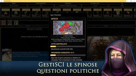 Di anno in anno dovrete affrontare un gioco di scelte per mantenere l’equilibrio del regno. Riuscirete a ottenere la fedeltà dei vassalli e frenare le ribellioni che vorranno deporre i sovrani della vostra dinastia? Saprete impedire che le guerre e le carestie decimino i vostri sudditi?