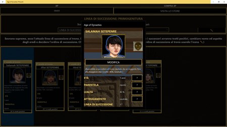 Fai crescere il tuo regno governando dal tuo palazzo reale mentre, con il favore delle più potenti divinità, ti assicuri una florida discendenza frequentando il tuo harem. Sviluppa nuove tecnologie per gestire al meglio l’impero e migliora le abilità degli eredi al trono tramite i talenti.
