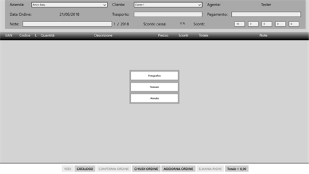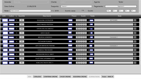 Questa App è il mix perfetto tra gestione listini e ordini di merce dell'azienda. Usata dai rappresentanti dell'Azienda, permette di mostrare ai clienti la lista fotografica o testuale di tutti i prodotti in vendita, dando la possibilità di ordinare ogni singolo articolo aggiungendo anche sconti o offerte speciali in base al rapporto rappresentante - cliente.