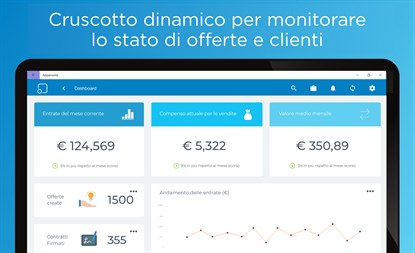 Apparound conserva tutte le sue funzionalità anche in assenza di connessione a internet. Il venditore può mostrare i contenuti di vendita, elaborare l'offerta e raccogliere la firma del cliente in un solo incontro. Apparound aiuta le aziende a incrementare la produttività del proprio team di vendita semplificando la gestione dell’incontro per il venditore e il processo di acquisto per il cliente.