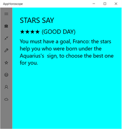 AppHoroscope ti fornisce ogni giorno un oroscopo basato sul tuo segno e personalizzato per te. Include previsioni per argomenti come AMORE, LAVORO, AMICIZIA, TEMPO LIBERO e due sezioni speciali: I CONSIGLI DELLE STELLE e SOGNI&PROVERBI. Divertiti a scoprire il tuo futuro con un’APP semplice e personalizzata in base alla tua lingua, al tuo segno e al tuo nome.