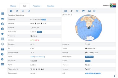 Atlante mondiale, mappa del mondo e app educativo per la geografia. Bandiere, mappe e dati di base per oltre 250 paesi e territori del mondo.