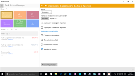 BAM è una completa applicazione che permette di gestire in bella interfaccia vostri conti bancari registrati, inserendo molto velocemente i vostri pagamenti o depositi, controllando le transazioni in sospeso, si calcola attuali equilibri o stimato in qualsiasi data, applicare nessun tipo di filtri sulle attività, stima il tuo budget, o anche file di importazione OFX dal tuo sito web banca !