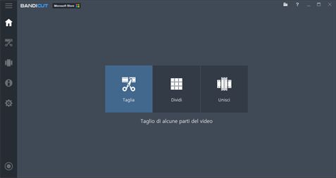 Bandicut è un software con un'interfaccia facile da usare per dividere/unire rapidamente i video. Permette di tagliare porzioni del file video velocemente mantenendo intatta la qualità originale. E' possibile anche estrarre l'audio di un video come MP3, unire più file video, rimuovere una o più parti del file video oppure suddividere il video in più file.