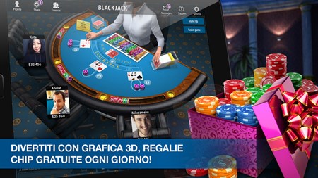 Caratteristiche del gioco: RICEVI RICOMPENSE: alza la posta, vinci le mani, vai all-in e ottieni i riconoscimenti. PARLA CON ALTRI GIOCATORI: usa il nostro comodo sistema di messaggistica e la chat per discutere le partite che hai vinto e condividere le tue esperienze con gli amici e i rivali. CHIP GRATUITE: accedi al gioco ogni giorno per ricevere delle chip gratuite. IMPARA A GIOCARE: sei un nuovo giocatore e hai sempre desiderato metterti alla prova con il Blackjack? Possiamo aiutarti a compiere i primi passi. NESSUNA REGISTRAZIONE: usa la modalità ospite per giocare a 21 senza registrarti. UN SOLO ACCOUNT UTENTE: il tuo account è collegato a Pokerist Texas Poker e Roulettist, quindi puoi utilizzare i tuoi contatti, i tuoi riconoscimenti e le tue chip in tutte e tre le applicazioni. INTERFACCIA CONFORTEVOLE: l'interfaccia del gioco è semplice e divertente, potrai dividere la posta, vedere o raddoppiare con un solo tocco.