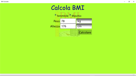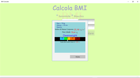 Indice di Massa Corporea (BMI) è un semplice indice di peso per un'altezza che viene comunemente utilizzato per classificare sottopeso, sovrappeso e obesità negli adulti. Esso è definito come il peso in chilogrammi diviso per il quadrato dell'altezza in metri (kg/m2).