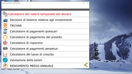 I calcolatori comuni che sono stati inclusi sono i seguenti Calcolatore del valore temporale del denaro Decisioni di bilancio relative agli investimenti TRI/VAN Calcolatore di pagamenti ipotecari Calcolatore di pagamento del prestito Calcolatore di risparmio Calcolatore di pagamenti perpetuo Calcolatore del tasso di crescita Valutazione delle azioni RENDIMENTO MEDIO ANNUALE RENDIMENTO DEL CAPITALE INVESTITO Calcola il punto di pareggio Modello di valutazione degli attivi finanziari (CAPM) Calcolatore di valutazione delle obbligazioni Calcolatore del tasso di inflazione Pianificatore di Pensionamento