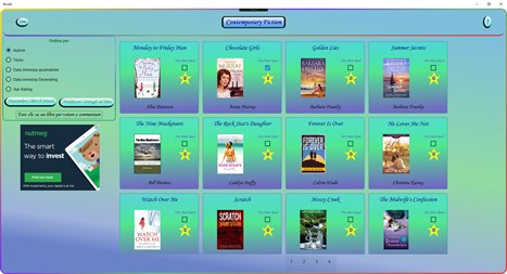 Il tuo lettore e ha pagine e pagine di libri? Mai andate all'ultima pagine per scegliere un libro da leggere o ci vuole troppo tempo? Vuoi sapere quale libro hai preso in prestito? BookE è un'applicazione facile da usare per memorizzare le informazioni della tua libreria di E-book. Ordinati per genere i libri dettagli sono facilmente disponibili per rendere la scelta di un nuovo letto semplice. È possibile contrassegnare quali libri avete letto, aggiungere stelle di classificazione per i vostri favoriti, facilmente controllare quando preso in prestito un libro e persino creare una lista dei desideri. La tua libreria virtuale personale ripiani.