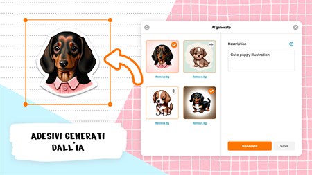 GENERATORE DI ADESIVI AI Crea adesivi unici e personalizzati con pochi clic utilizzando l'intelligenza artificiale. Esplora infinite possibilità e lascia risplendere la tua creatività!