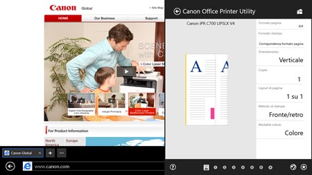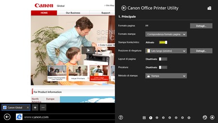 - Quando si esegue la stampa dalle app di Windows Store e dalle app Windows è possibile configurare impostazioni di stampa dettagliate. - È possibile accedere al sito di assistenza Canon e al sito per il download di software. - Permette di avviare l'IU remota, ovvero il software per la gestione delle periferiche laser multifunzione e delle stampanti laser mediante l'uso di un browser Web. - Permette di visualizzare lo stato (carta esaurita ecc.) delle periferiche laser multifunzione e delle stampanti laser. - Per informazioni su come avviare l'IU remota e visualizzare le informazioni di stato, fare riferimento alle voci [Informazioni sull'utilizzo dell'app] nella schermata delle impostazioni dopo aver installato l'applicazione. *A seconda del modello e dello stato di configurazione della periferica laser multifunzione o della stampante laser in uso, alcune funzioni potrebbero non essere disponibili. *Il driver della stampante UFR II/UFRII LT V4 potrebbe non essere disponibile in alcune aree geografiche.