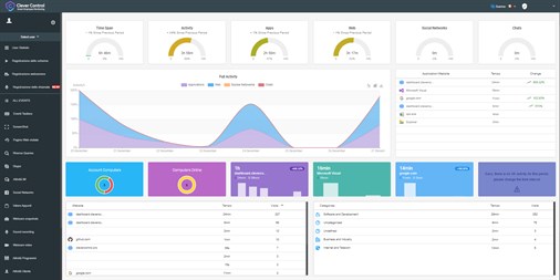 Registrazione delle applicazioni e dei siti Web più utilizzati Se non hai tempo per esaminare i dati grezzi raccolti, alcuni utili grafici statistici lo faranno per te. Scopri quali app e categorie di siti Web utilizzano più spesso i tuoi dipendenti, quanto tempo vi trascorrono e come questo valore cambia nei diversi periodi. Ottieni una visione immediata del processo di lavoro e identifica la necessità di formazione a giudicare dalle statistiche.