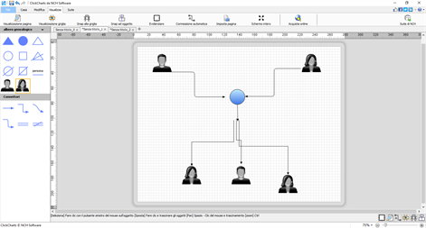 Crea rapidamente rappresentazioni visive di un processo o di un'organizzazione creando un diagramma con ClickCharts. I tipi più popolari di progetti grafici che possono essere realizzati all'interno del programma pubblicitario includono diagrammi di flusso, UML, diagrammi ER, diagrammi di flusso di dati, diagrammi di mappe mentali e altro. ClickCharts rende facile iniziare con i modelli di grafici e un'interfaccia utente intuitiva. Il programma offre una varietà di simboli, forme e colori per ottenere il massimo dai tuoi diagrammi. Quando hai finito, stampa il diagramma o salvalo sul tuo computer nei formati più diffusi come .pdf, .png, .jpg e altri.